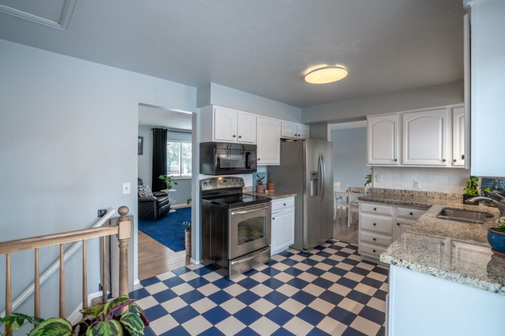 Beautiful home located on a large corner lot with space for outdoor entertaining and is just blocks away from the neighborhood school. Step inside to an open feel with the perfect gray paint and light bamboo floors. Peek into the kitchen and you’ll immediately notice the adorable navy and white checkered tile floors, white cabinets, stainless steel appliances, and granite counters. The family room has tons of space to spread out in front of the painted white brick fireplace. The family room is located near the bathroom and the Laundry room. Head upstairs to 2 spare bedrooms that share an updated full bathroom. Beautiful shower tile detail. The main bedroom has its own en-suite bathroom with a glass-enclosed shower. The basement has been finished with two rooms, both are non-conforming bedrooms, one is ideal for an office and the other has a massive closet, so could be a guest space or a kid’s game room. Additional unfinished storage. This home has a classic style with updated colors. Walking distance to a theatre, shopping, restaurants, and walking trails. Welcome to your new abode!