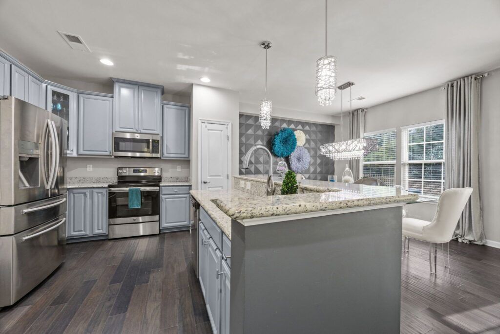 The updated kitchen is a chef’s dream, featuring granite countertops, upgraded cabinetry, and sleek stainless steel appliances. Whether you’re preparing a quick meal or hosting friends, this kitchen is both functional and stylish.