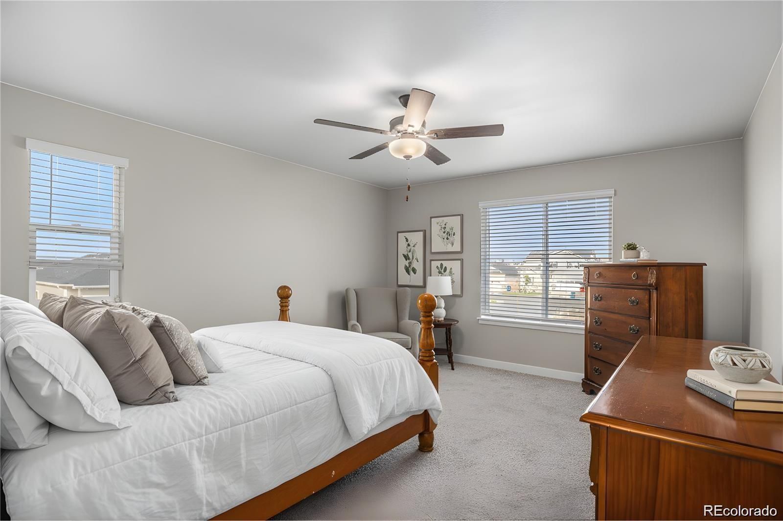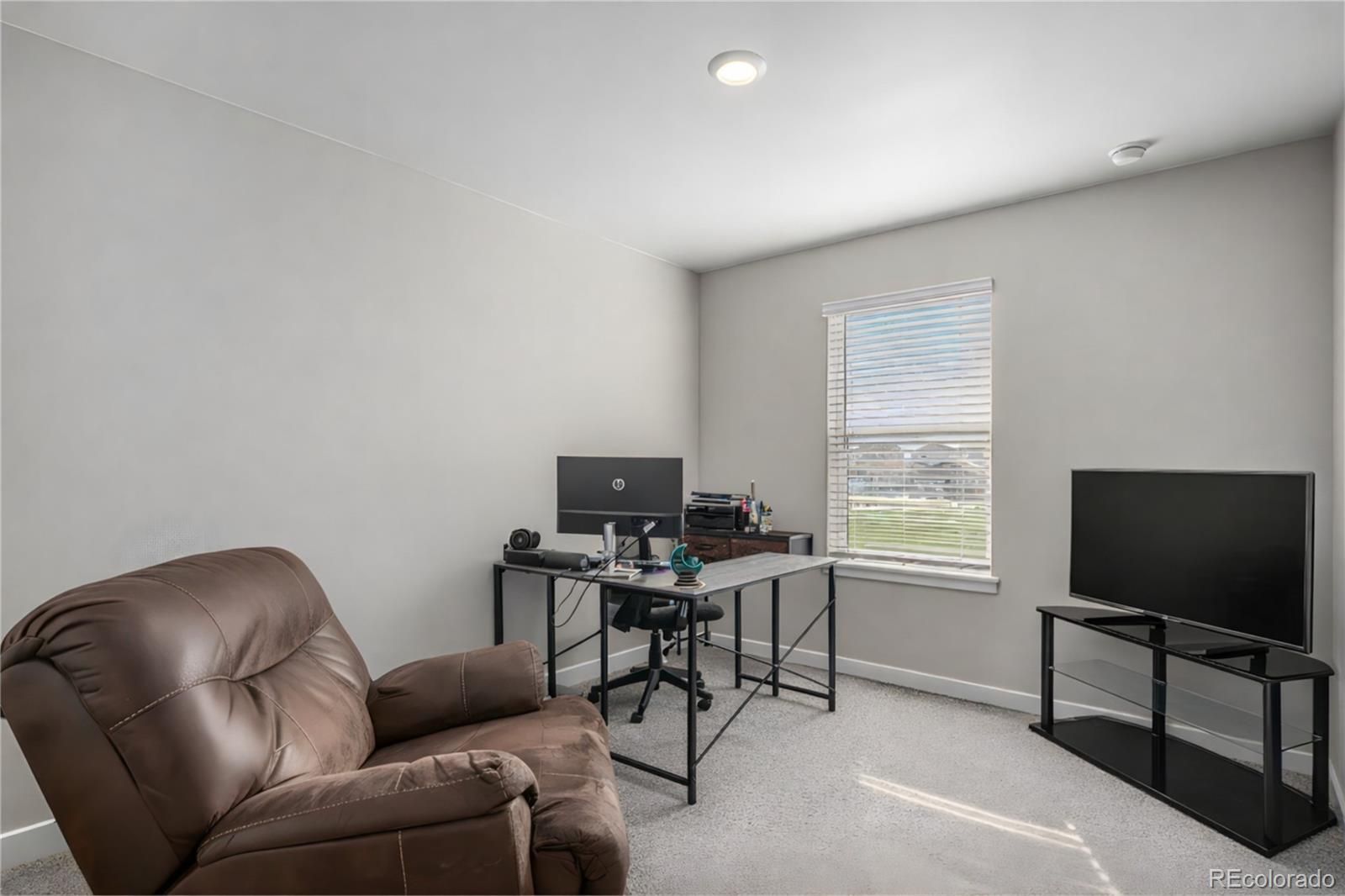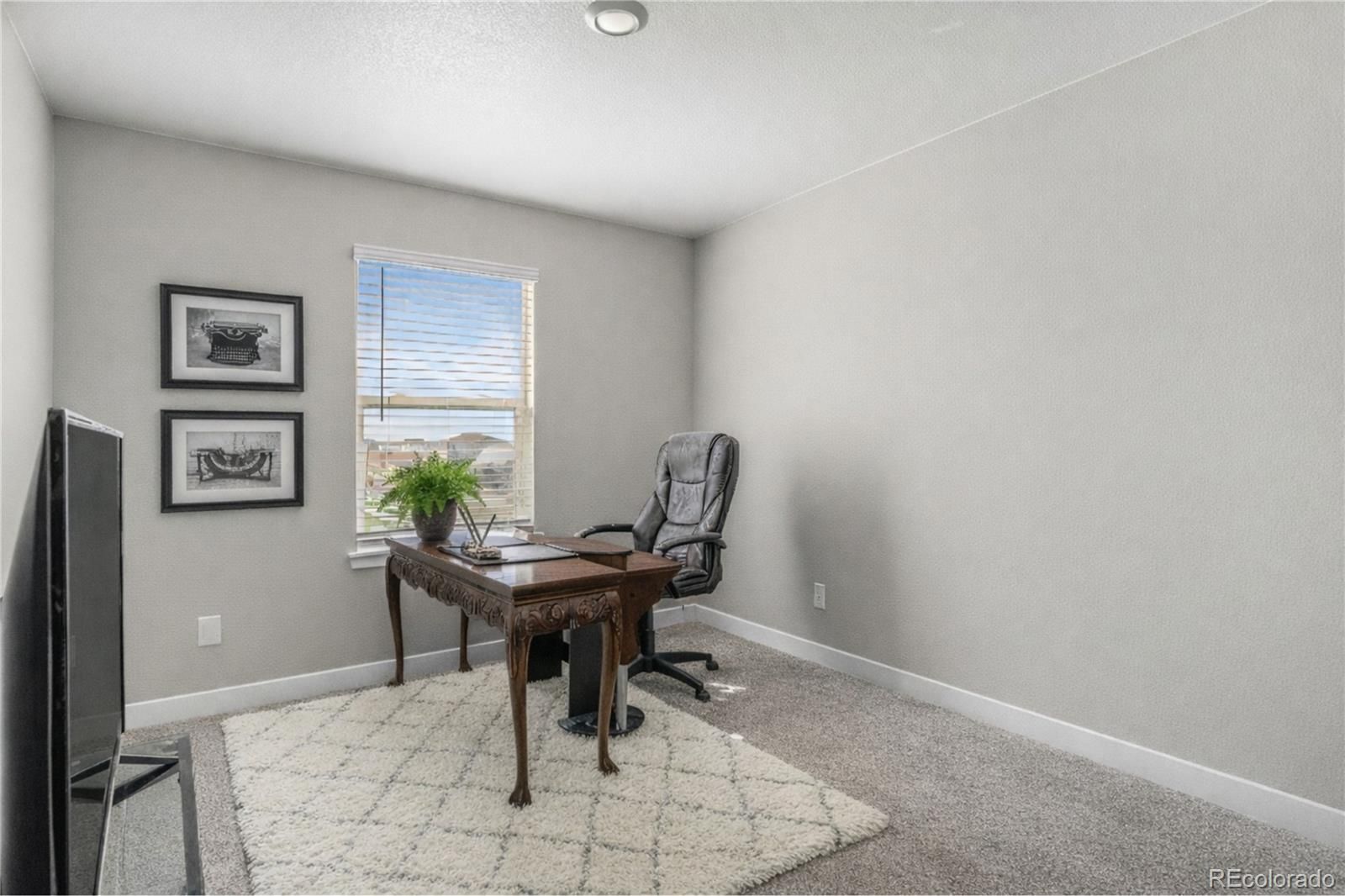 Amazing opportunity - INSTANT EQUITY! This inviting home offers a bright, open layout filled with natural light throughout the main level. The living area provides a comfortable space to relax and enjoy time with family and friends. The kitchen features a modern design with plenty of workspace for cooking and gathering. A convenient in-home office is ideal for those who work remotely or study from home, offering focus and privacy without feeling disconnected from the main living areas. Upstairs, the primary suite provides a peaceful retreat, complete with a spacious five-piece bathroom that adds comfort and a touch of luxury. Outside, the generous corner lot offers space for gardening, barbecues, or simply relaxing under the sun. The two-car attached garage provides parking and ample storage. A beautiful park sits directly across the street, offering open space, play areas, and a welcoming community atmosphere. This location is just minutes from Denver International Airport. With its excellent features and value, this home stands as the lowest-priced property in the area, making it an incredible opportunity. Come see it today and discover all it has to offer.