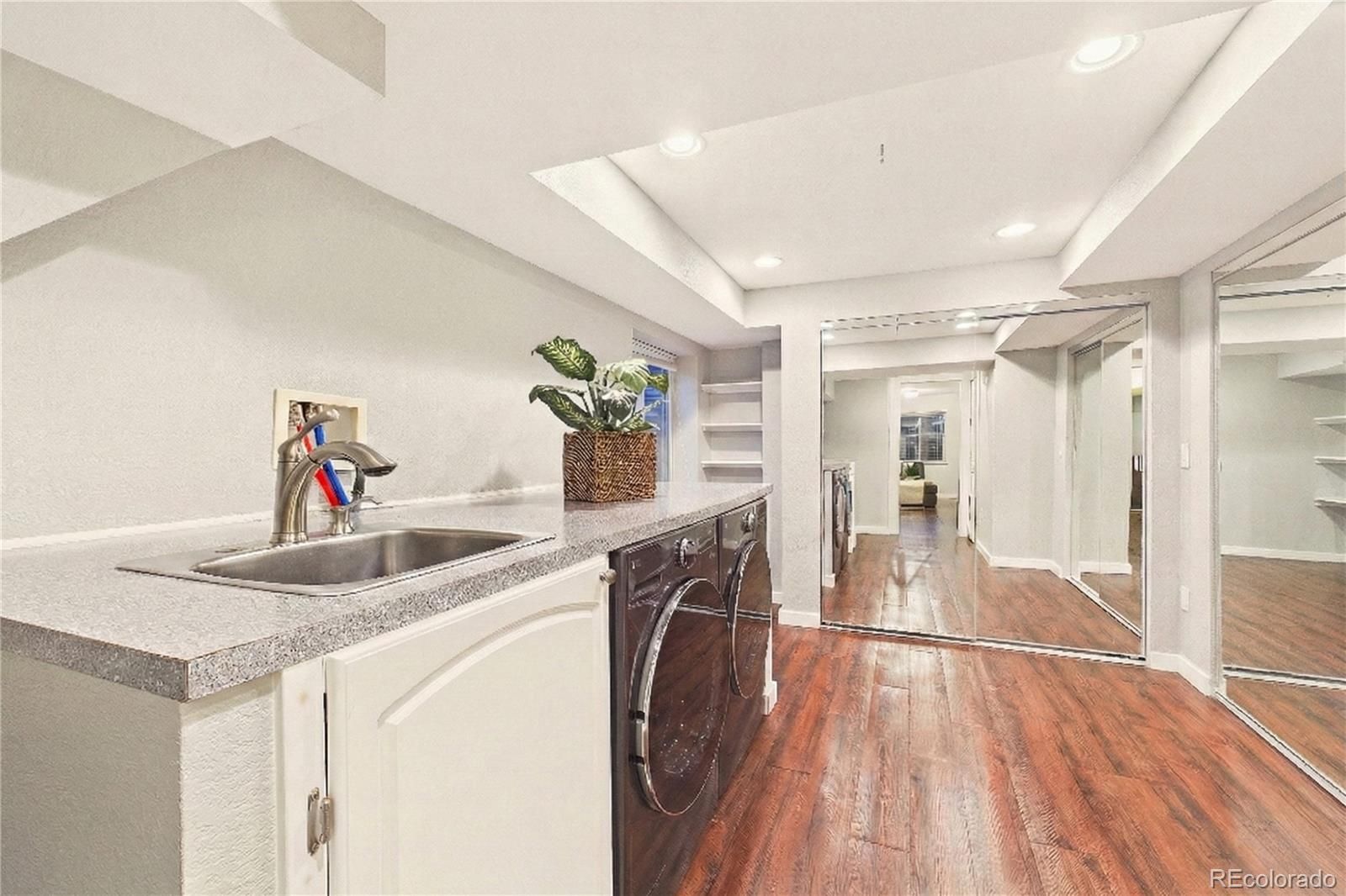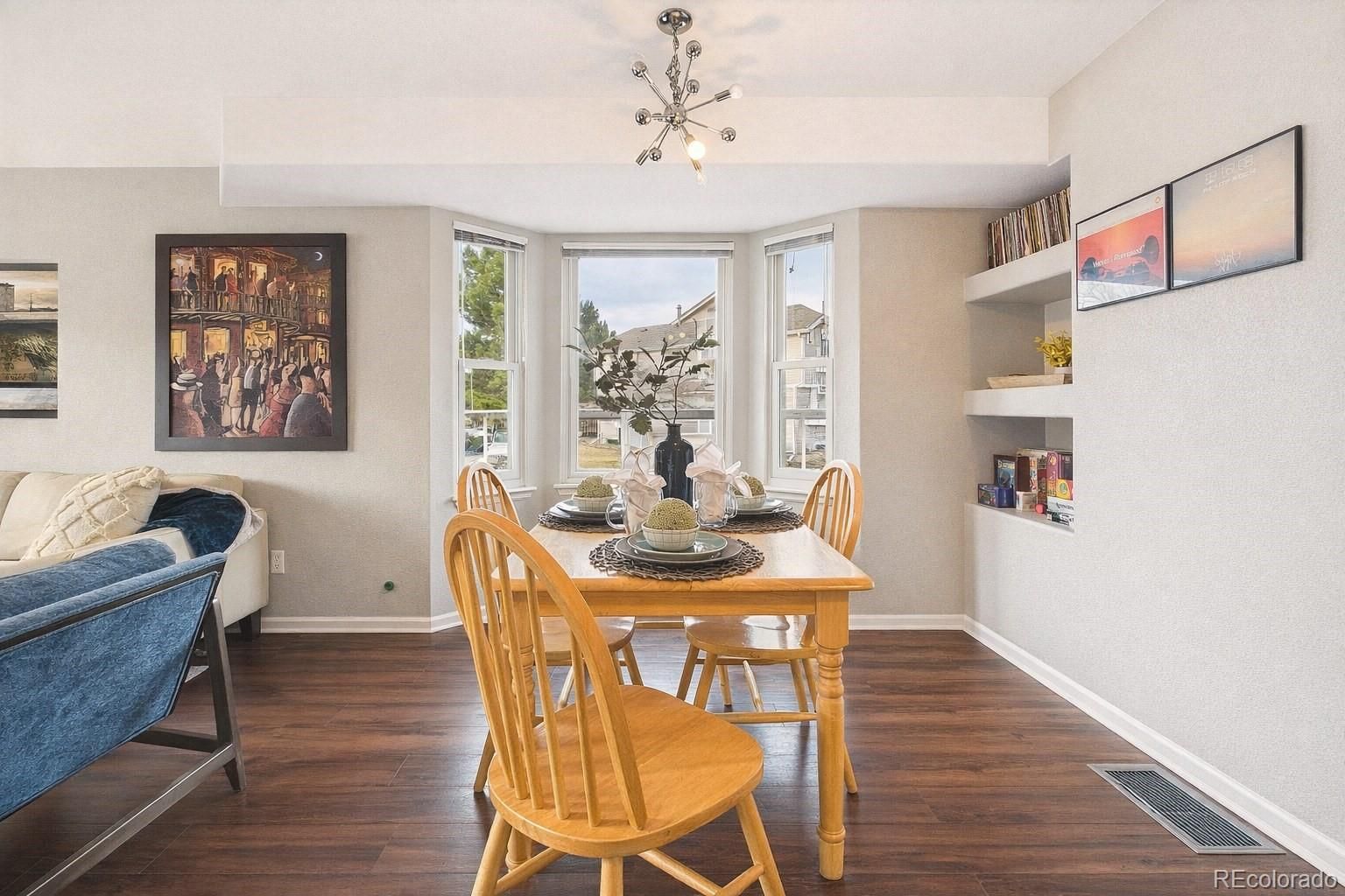 This thoughtfully designed townhome offers a functional floor plan, modern updates, and access to outdoor amenities that make everyday living easy and enjoyable. The main level features an open living room and a kitchen equipped with stainless steel appliances and abundant cabinet storage. A dedicated dining area is also located on the main level, along with a convenient half bathroom. Vinyl wood flooring runs throughout the main level, upper level, and finished basement, creating a cohesive and low-maintenance living environment. Upstairs, the primary bedroom includes a full bathroom and two closets, providing both privacy and generous storage. An additional bedroom and bathroom are also located on this level. The finished basement expands the living space with a spacious family room, ideal for movie nights, a home office, or a workout area. The laundry room is located in the basement and includes a utility sink for added convenience. The HOA provides extensive coverage including water, sewer, trash, snow removal, insurance, road maintenance, and exterior and grounds maintenance, supporting a truly low-maintenance lifestyle. Residents also enjoy access to a community pool and playground. Parking is convenient with a detached carport plus an additional reserved uncovered space. Situated near the Cherry Creek Trail and the High Line Canal, this townhome offers quick access to walking and biking paths, outdoor recreation, and nearby everyday conveniences. A great opportunity for comfortable living with thoughtful features throughout! Welcome HOME!