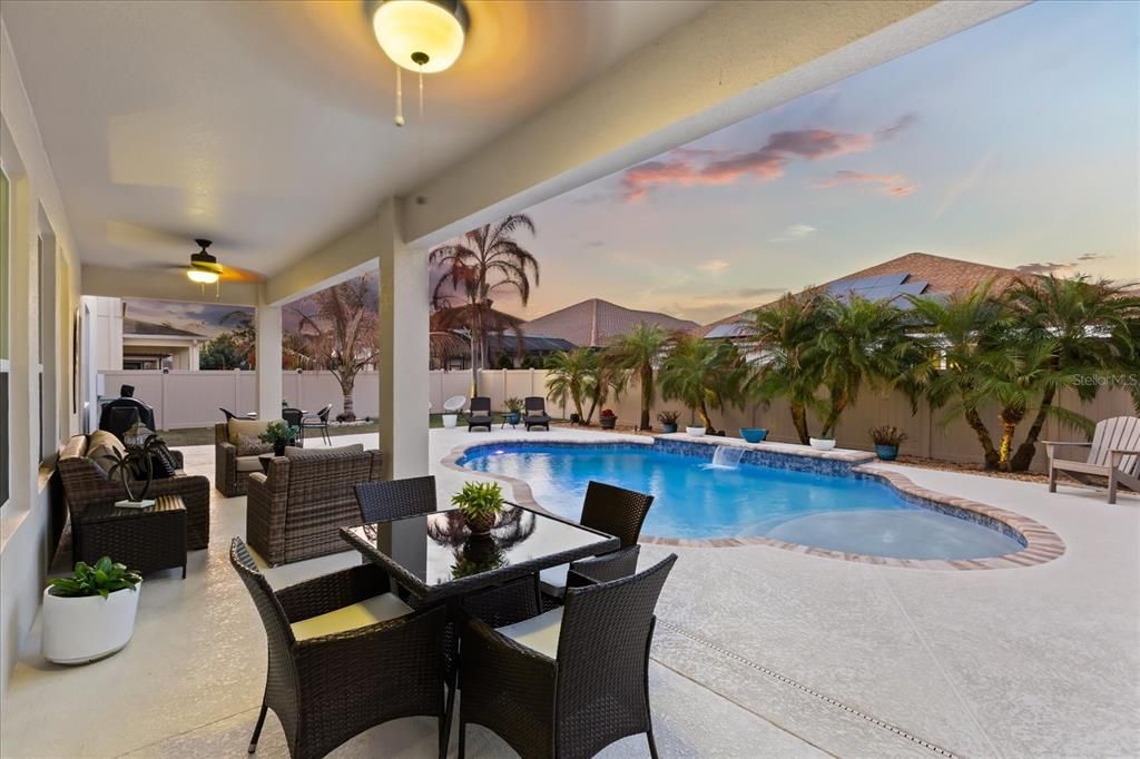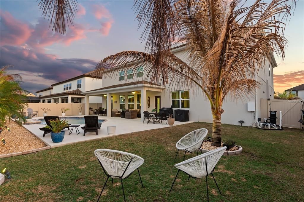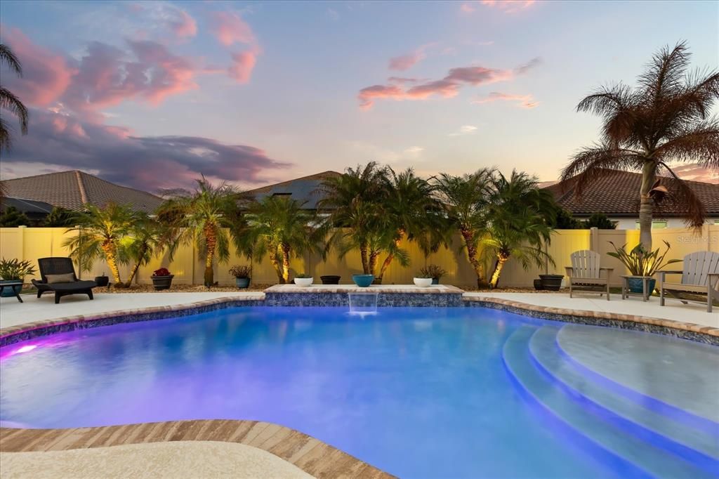 Step outside to your own private oasis. Designed for beauty and ease, the low-maintenance outdoor space features a stunning saltwater pool-perfect for year-round enjoyment in the Florida sunshine. Whether hosting elegant gatherings or enjoying peaceful evenings poolside, this backyard retreat offers the ultimate blend of luxury and relaxation without the upkeep.