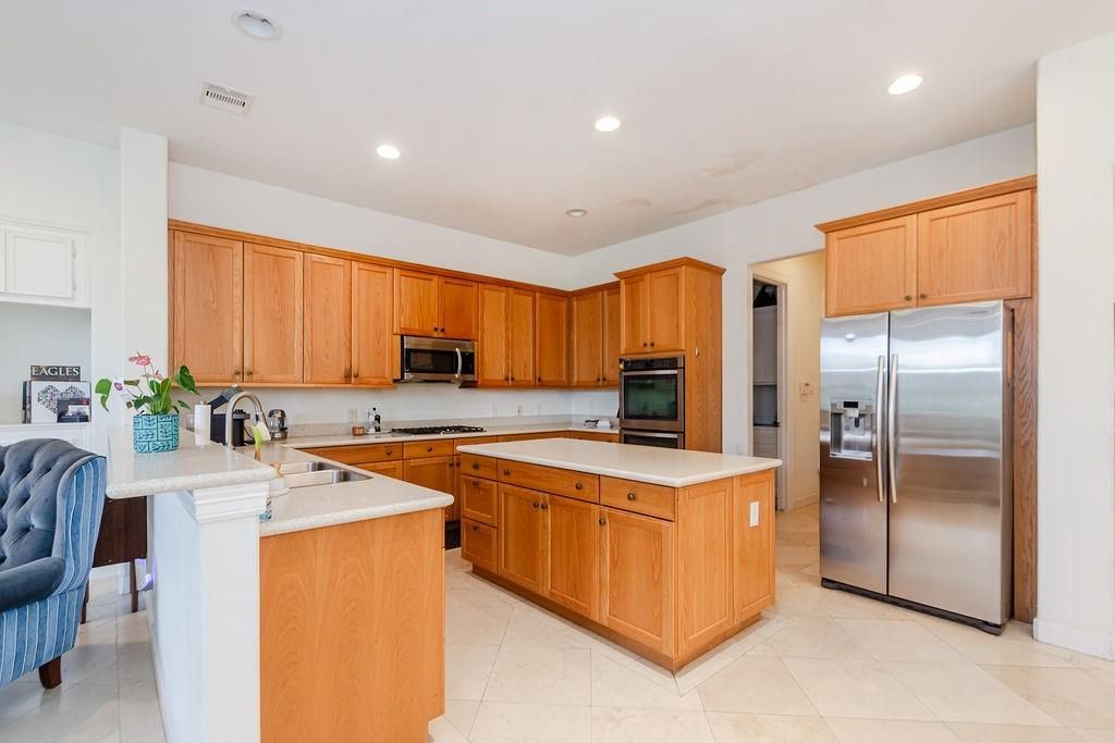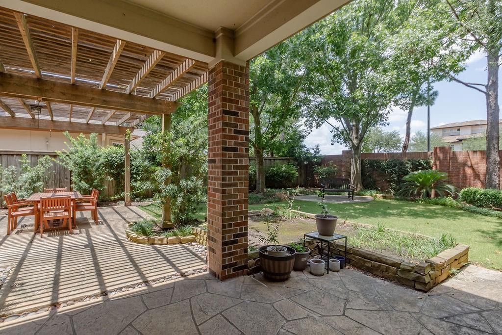 This elegant residence offers the perfect blend of country club living and everyday comfort, ideally located within walking distance to the clubhouse, golf course, community amenities, and school drop-off. Designed with a fabulous open floor plan, the home features soaring ceilings, marble flooring, and abundant natural light. The spacious formal living and dining areas flow seamlessly into a gourmet kitchen that opens to the breakfast nook and family room—each space framed by oversized picture windows with serene views of lush landscaping and a beautifully manicured garden. Step outside to a fabulous pergola with extensive decking, ideal for relaxing or entertaining guests. Upstairs, the private primary suite is joined by two additional ensuite bedrooms and a versatile loft space perfect for lounging or play. Downstairs includes two ensuite bedrooms—one ideal as a guest suite—and a converted garage offering endless possibilities as a game room, home office, quarters, or sixth bedroom.