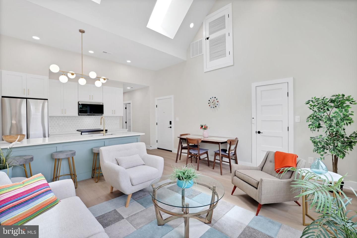 Discover elevated city living in this beautifully renovated 2BR/2BA penthouse-style condo, ideally located in the heart of Brookland. Nestled on a quiet tree-lined street, Unit 4 offers sun-drenched interiors, high ceilings, and skylights that flood the space with natural light. The open-concept living area features wide-plank white oak floors, recessed lighting, and a designer kitchen with quartz countertops, solid wood cabinetry, a large island, and premium Samsung stainless steel appliances—including an induction stove.