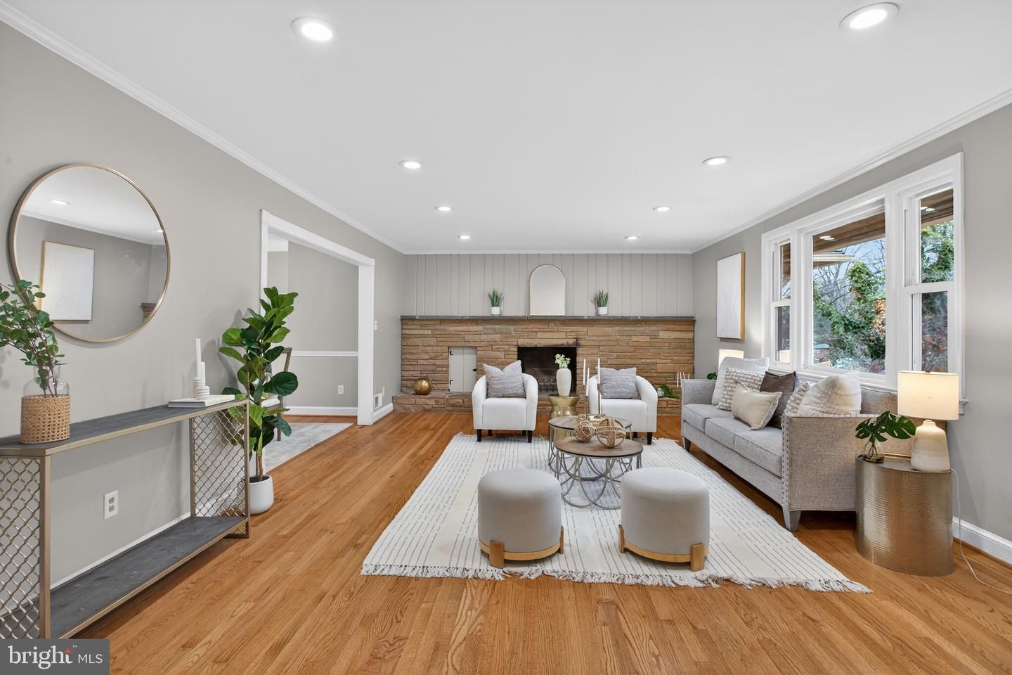 This residence offers true main-level living with 4 BEDROOMS and 2 full baths on the primary floor and a bonus play room off the kitchen. The freshly painted bright interior features newly refinished hardwood floors, recessed lighting, and a cozy fireplace.