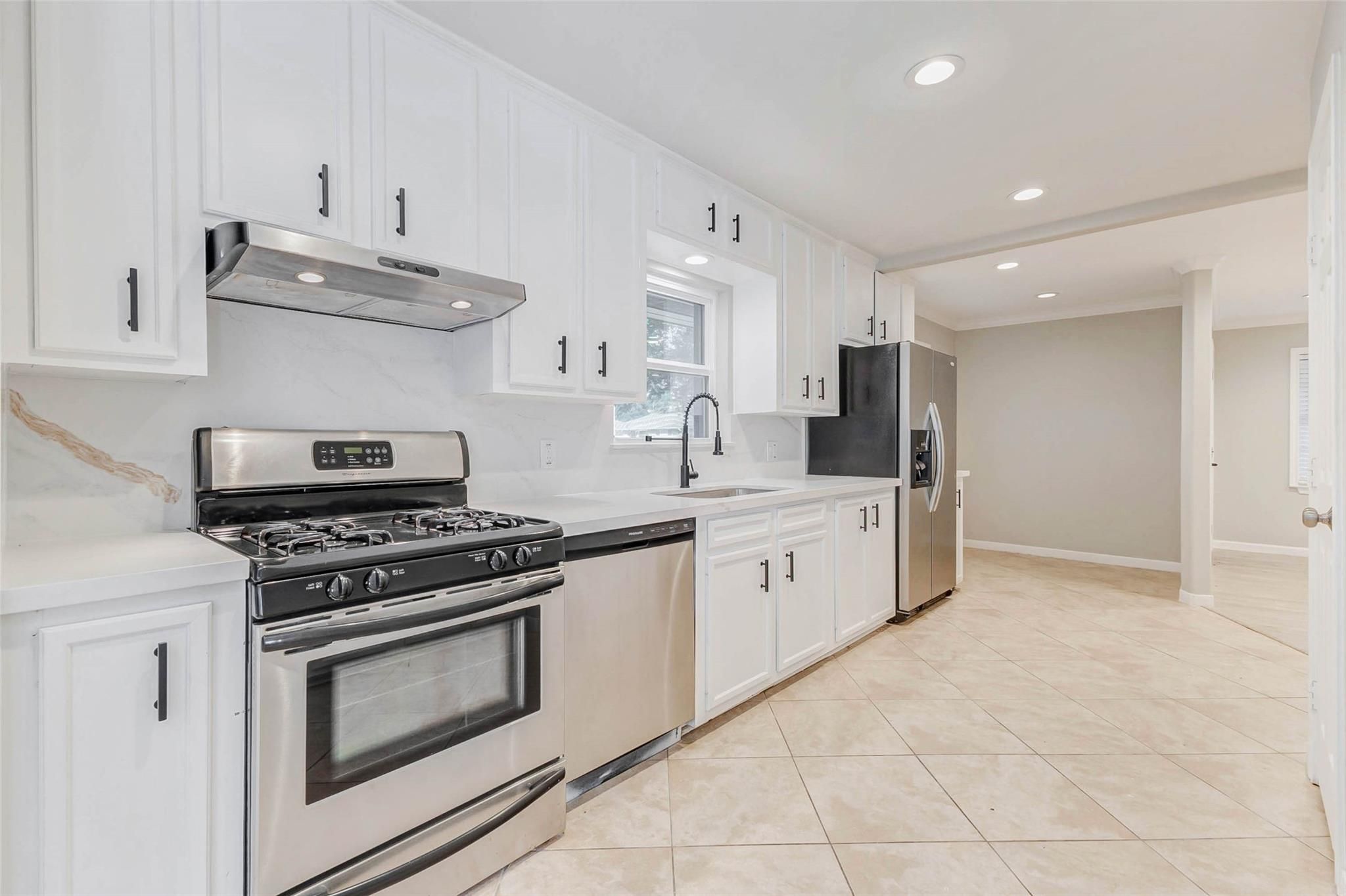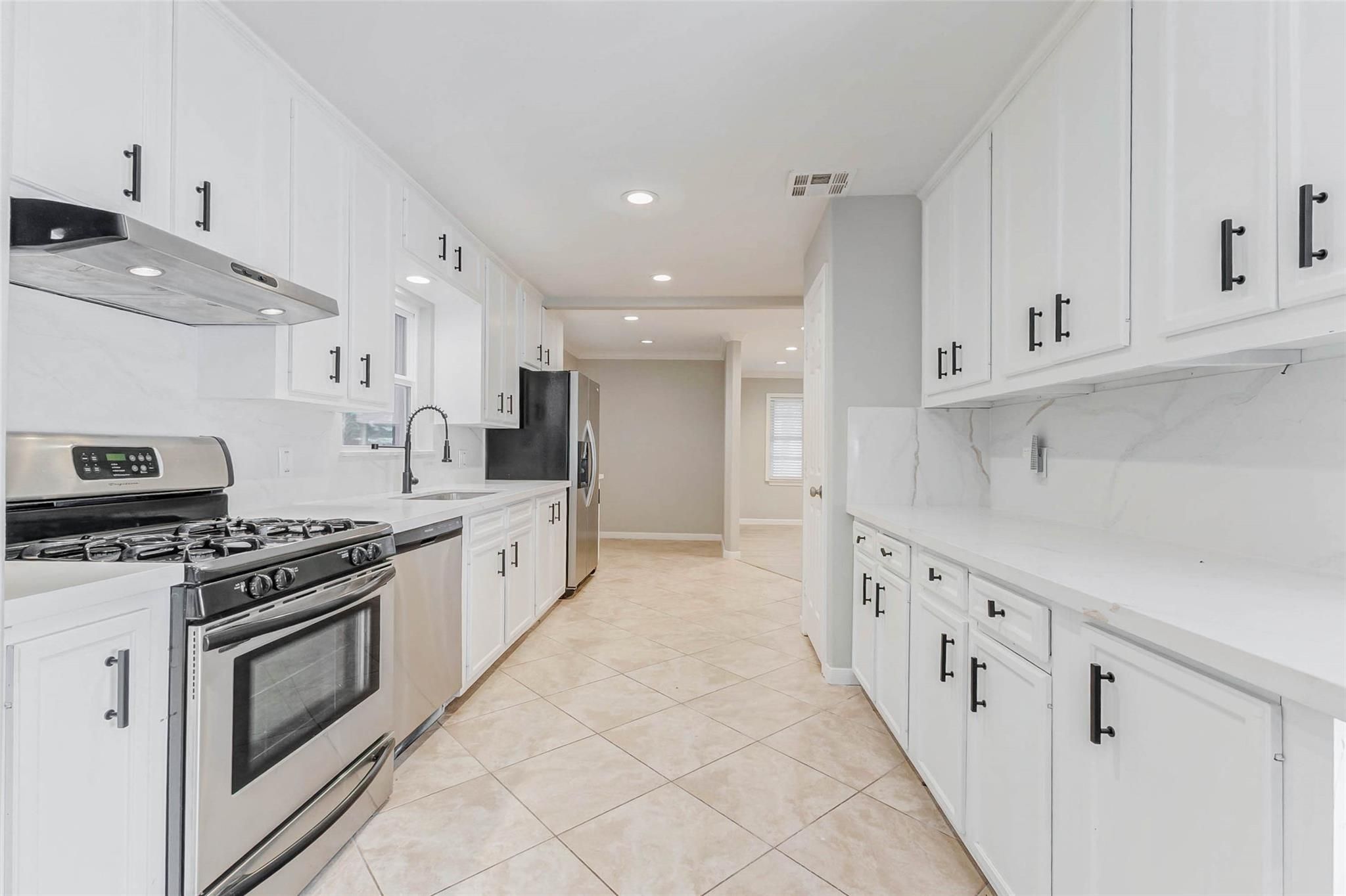 Welcome to this beautifully updated 3-bedroom, 2-bath home offering modern style and everyday comfort in a prime Houston location. Step inside to a bright, open living area filled with natural light—perfect for relaxing or entertaining. The updated kitchen boasts sleek quartz countertops, a marble backsplash, and stainless steel appliances that make cooking a delight. The primary suite provides a peaceful retreat with stylish ensuite bath, while two additional bedrooms offer versatility for guests, family, or home office. Outside, enjoy a fully fenced backyard ideal for pets, play, and weekend gatherings, plus a spacious two-car garage for added convenience. Ideally situated just 25 minutes from Downtown Houston, 15 minutes from The Galleria’s premier shopping, and 10 minutes from the trendy Heights dining scene, this home blends comfort with city accessibility. Everyday essentials like coffee shops, grocery stores, and restaurants are only minutes away—making this an unbeatable find!