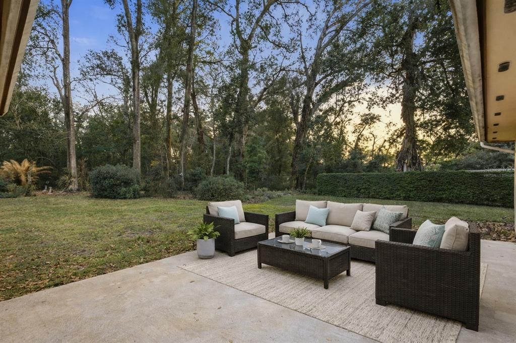 Surrounded by mature trees and wooded privacy, the property sits in a higher elevation area and is serviced by well water with irrigation, creating a true gardener's paradise. The backyard is filled with tropical plantings, lush greenery, and even fruit producing varieties, offering a peaceful outdoor retreat with room to expand, entertain, or simply enjoy nature.