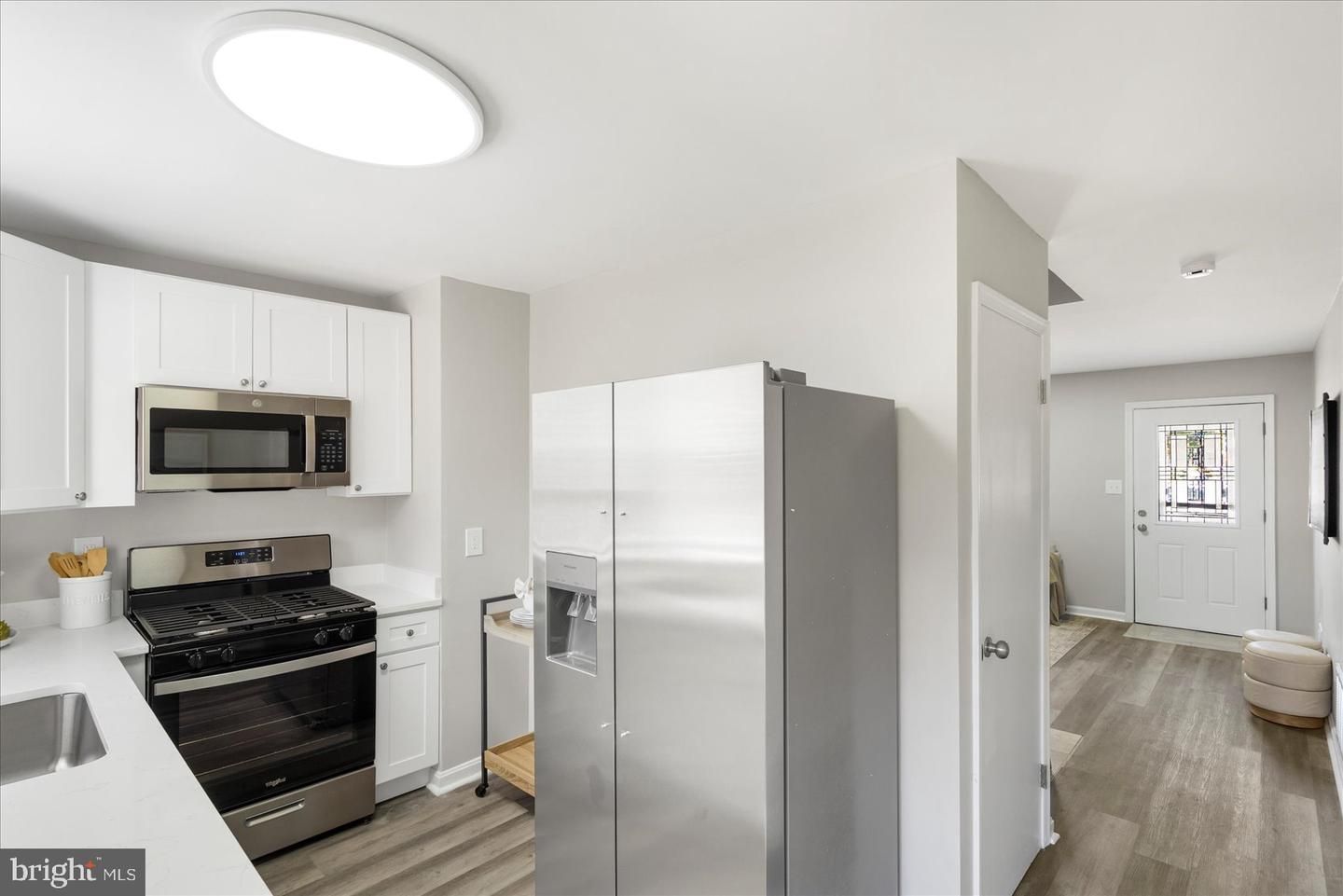 This beautifully updated rowhome is the perfect blend of charm, functionality, and modern finishes. Boasting three spacious bedrooms and one full, tastefully renovated bathroom, this home is filled with natural light that flows effortlessly throughout the space. From the moment you step inside, you’ll notice the seamless luxury vinyl plank flooring that adds warmth and continuity across every room.