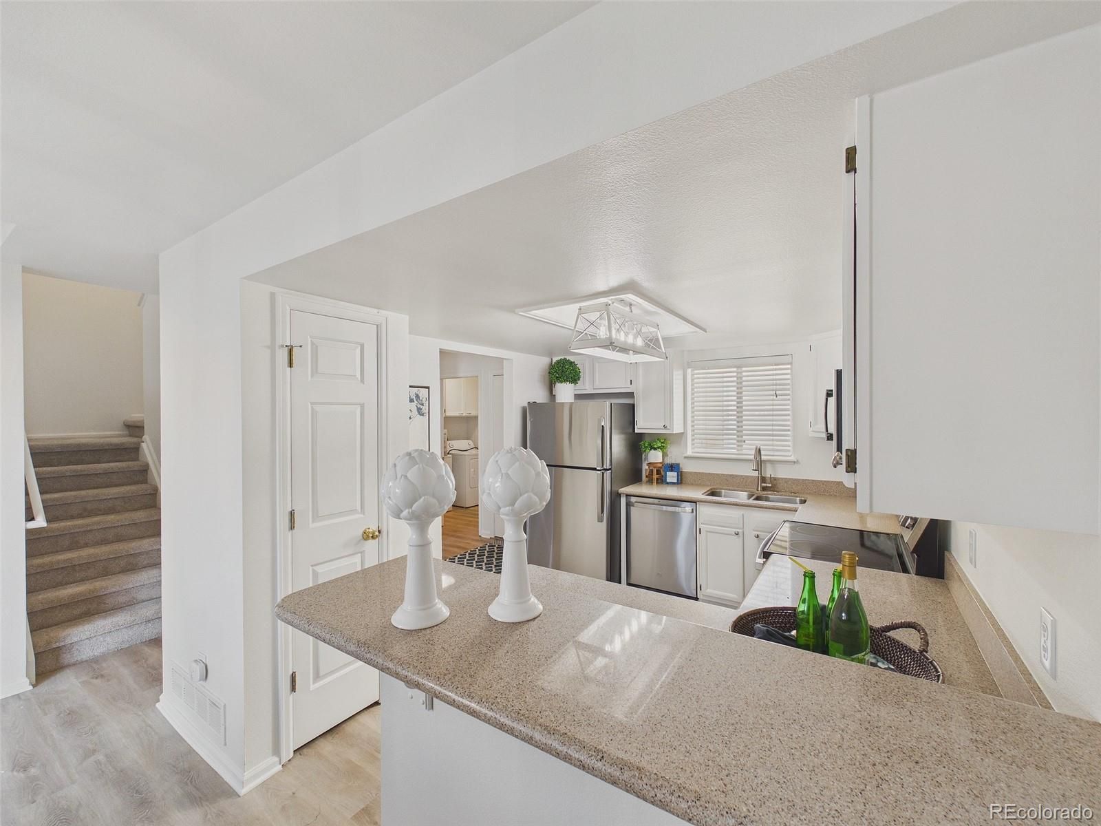 ***OPEN HOUSE SATURDAY, MARCH 14TH 11AM-1PM***Welcome to this thoughtfully updated townhome in the desirable Meadowlake community, offering a blend of comfort, functionality, and low-maintenance living. A brand-new front porch creates an inviting first impression, while the private back porch provides a peaceful outdoor retreat, an ideal setting for morning coffee or quiet evenings outdoors. Inside, the home features fresh paint throughout, along with updated light fixtures that add a modern touch. The kitchen is equipped with creamy white cabinets, brand-new stainless steel appliances and opens directly to the dining area and great room, creating a comfortable layout for everyday living and entertaining. You will enjoy cool nights cozied-up to that special someone in front of the fireplace. New LVP Flooring throughout the main floor and new carpet in the upper level make this home feeling fresh and ready to move into. Upstairs, the primary suite offers a spacious walk-in closet and an attached bathroom. A second bedroom on the same level also includes its own bathroom and walk-in closet, providing privacy and convenience for guests. The finished basement adds valuable flexibility with an additional living area that can easily become a movie lounge, game room, play space, or home office. A third bedroom and bathroom on this level create a perfect setup for guests and ideal space for a roommate. Completing the home is an attached two-car garage and the added benefit of backing to green space, giving the property a sense of privacy while remaining close to everyday amenities, parks, and local recreation. With HOA services covering exterior and grounds maintenance, road care, sewer, water, trash, recycling, and snow removal, residents can spend more time enjoying the home and surrounding areas. This move-in-ready townhome combines modern updates and versatile living spaces. Easy access to I-70, the Gold-Line Light Rail, shopping and dining options. Welcome HOME!