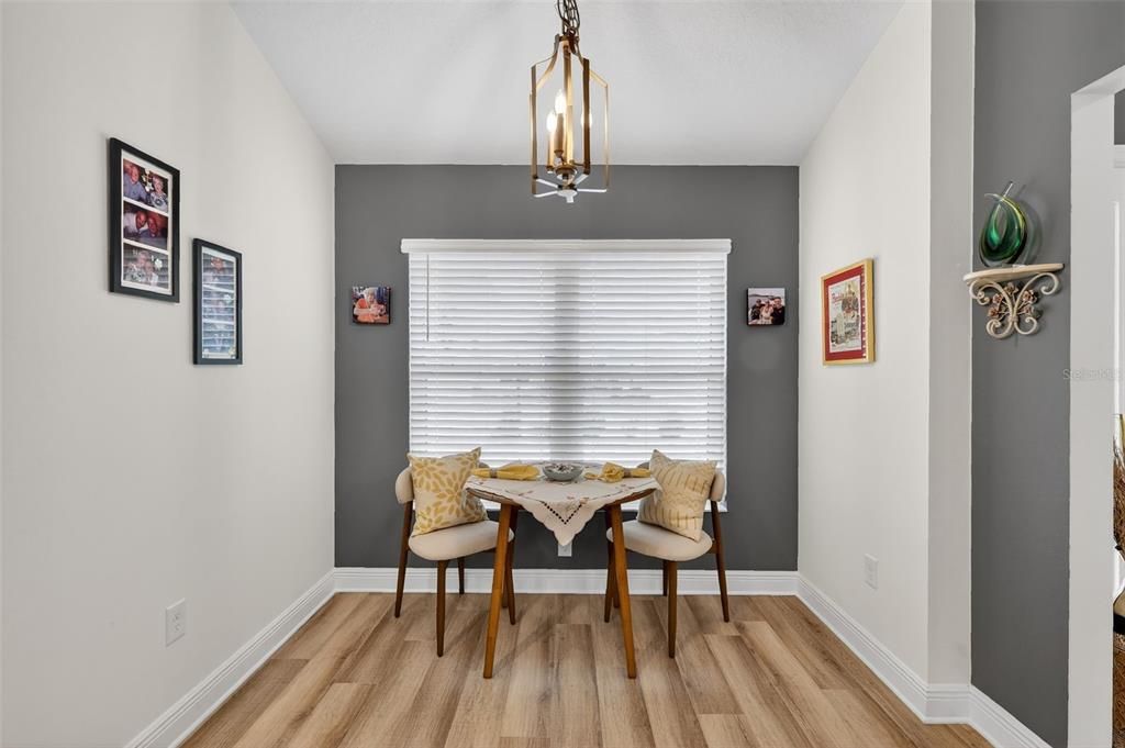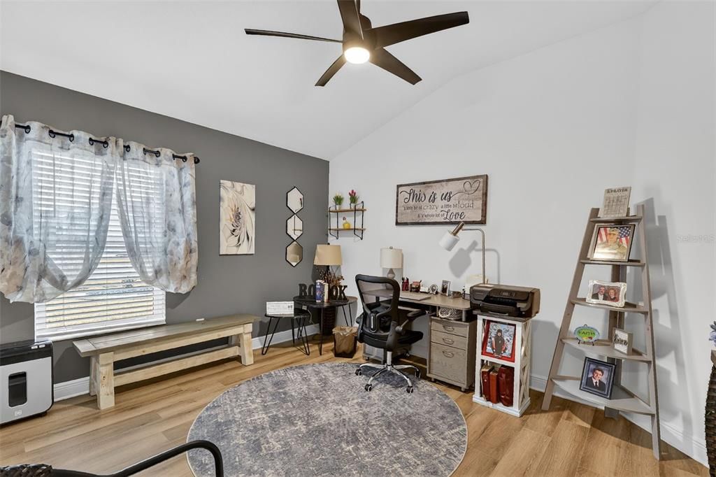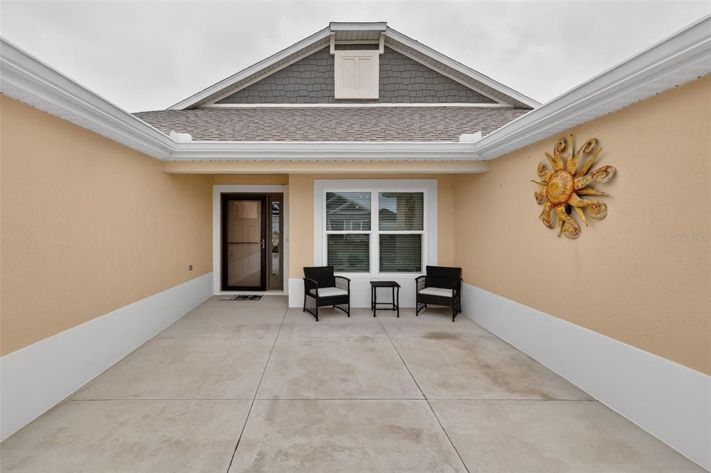 This lovely home has luxury vinyl plank flooring throughout, beautiful industrial style ceiling fans in the living room and 2 bedrooms, high toilets in the bathrooms, upgraded kitchen sink, gold hardware, attractive wide framed sliding glass doors leading out to the enchanting lanai that has been enhanced with an electric shade that comes with a remote. The lanai can be an exclusive getaway where you can enjoy a quiet evening with your coffee or tea and your favorite book. There are additional upgrades which include crown molding, a H2O Filtration system and a protective storm door.