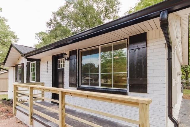BRAND NEW EVERYTHING!!!!! Welcome to 8317 Marlborough Drive in Jonesboro, GA-a beautifully renovated, move-in ready 3-bedroom, 2-bath brick home where timeless charm meets modern design. As you arrive, the classic four-sided white brick exterior and massive front yard set the stage. Step inside and be greeted by smooth ceilings, brand-new LVP flooring throughout, and a striking natural oak decorative slat accent wall framing a wall-mounted electric fireplace with multiple flame settings and heat. It's an instant vibe for cozy nights or entertaining. The heart of the home is the modern kitchen-fully updated with white shaker cabinets, soft-close drawers, and solid quartz countertops. A stainless steel farmhouse sink, electric stove with a pot filler, stainless steel appliances still under warranty, and a large island with space for barstools make cooking and gathering a joy. Don't miss the cute kitchen window overlooking the backyard, perfect for keeping an eye on the action. Every detail has been upgraded for peace of mind: brand-new HVAC, updated electrical panels, new water heater, and recessed lighting and ceiling fans throughout. The primary suite is a true retreat, featuring a walk-in closet and a modern bath with a stand-up shower offering three shower heads (rainfall, handheld, and standard). A large window fills the space with natural light and frames serene views of the backyard. Step outside to a covered back deck with a spotlight (or wire it for a ceiling fan), overlooking a massive backyard complete with a shed and built-in shelves for extra storage.