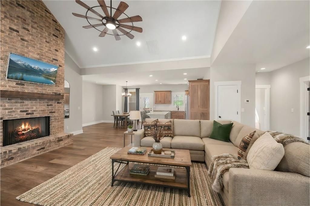 Nestled behind the gates of Anderson Farms in Ellijay, this home offers a rare blend of neighborhood living, natural beauty, and convenience on 2.19 acres. A beautifully landscaped front yard creates inviting curb appeal, and the backyard features a tranquil retreat with a waterfall and pond. Nearly 500 square feet of covered porches provide the perfect place to relax, entertain, and enjoy the surroundings. Inside, the home offers a custom kitchen with hickory cabinetry, granite countertops, stainless steel appliances, and an open layout designed for everyday living and entertaining. Vaulted stained wood ceilings, abundant natural light, and a custom brick fireplace create a warm and inviting atmosphere. A massive unfinished daylight basement offers exceptional potential for future expansion, recreation, or additional living space. The HVAC system is located in the basement, ensuring efficiency and easy access. Additionally, a whole-house Generac generator offers peace of mind by providing reliable power during unforeseen outages. Ideally located near North Georgia's apple orchards and wineries, and just about an hour from Atlanta and minutes from Dahlonega and Blue Ridge, this property captures the best of Ellijay living.
