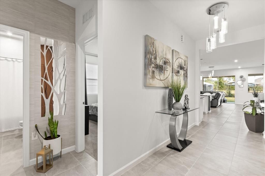 Located in the exclusive Soleil community of Kissimmee, Florida, this stunning home offers the perfect blend of luxury, comfort, and convenience. With its modern and elegant design, this residence features a spacious layout that includes a fully equipped kitchen with a large central island, ideal for entertaining. The bright and cozy living room opens up to expansive sliding doors, creating a warm and open atmosphere that seamlessly connects the indoor and outdoor spaces. The large covered lanai provides a perfect spot for relaxation or hosting guests, while the privacy of having no rear neighbors ensures ultimate peace and tranquility.
