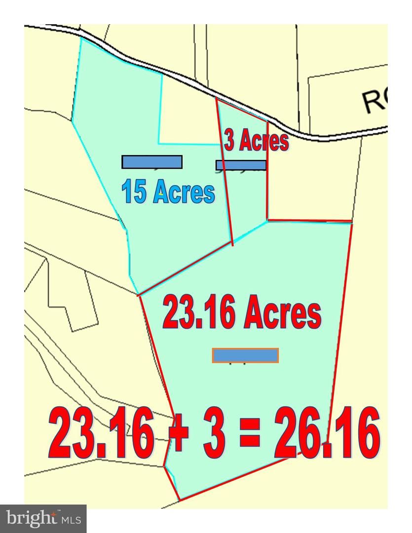 VERY IMPORTANT TO READ: Currently, the tax record shows 23.16 acres, but the sale is for 26.16. It also shows there is an easement to access the property through PARCEL 003. The surveyors are currently working on measuring the 26.16 acres to provide the information to the settlement attorney and be ready with the deed at the time of closing. The 3 acres that are being added to the 23.16 acres are taken from the front right section of PARCEL 003, Grid A1, Map 175, with Tax ID number 08-0845214, which is also currently listed for sale, to give direct access from the main street to the property.